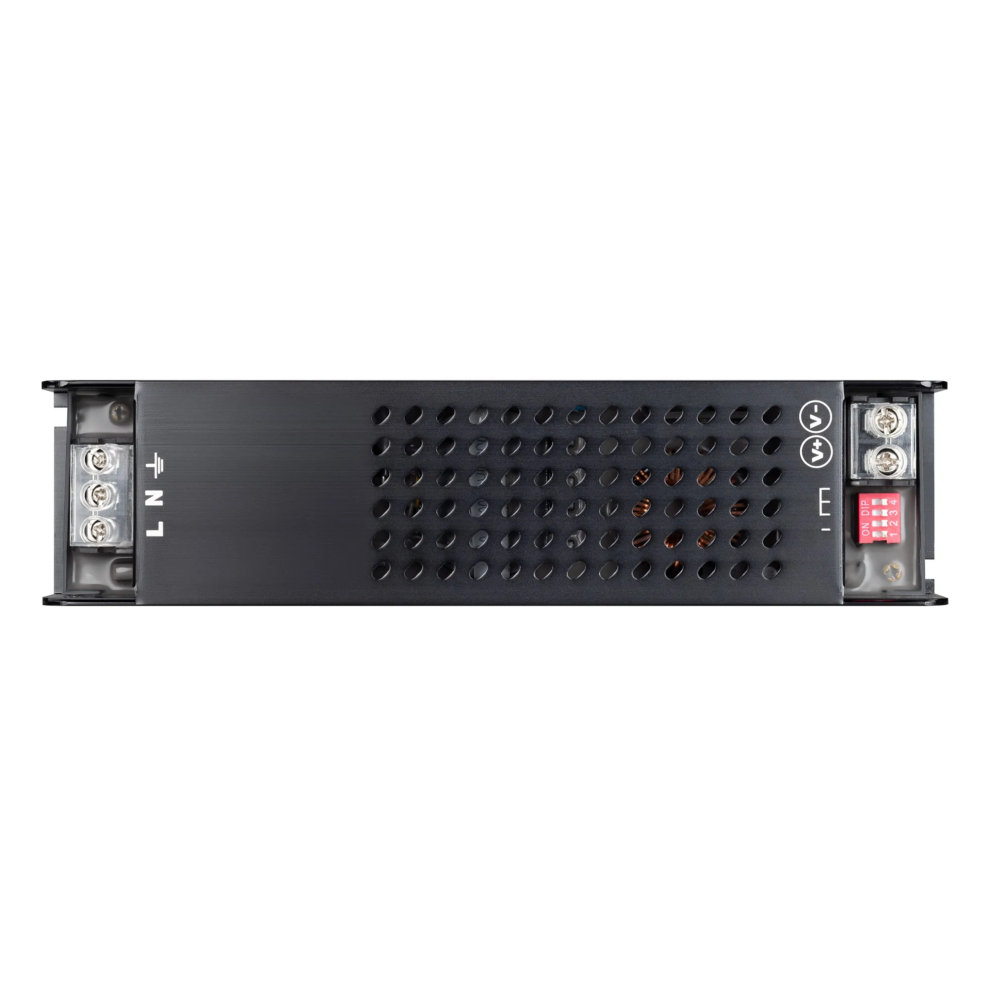 Источник напряжения с гальванической развязкой для светодиодных изделий. Входное напряжение 198-242 VAC. Выходные параметры: 24 В, 6.2 А, 150 Вт. Негерметичный алюминиевый сетчатый корпус IP 20. Возможность регулировки яркости с помощью DIP-переключателей. Функция плавного пуска, время выхода на полную яркость - 5 сек. Габаритные размеры длина 211 мм, ширина 52 мм, высота 27 мм. Гарантийный срок 5 лет.