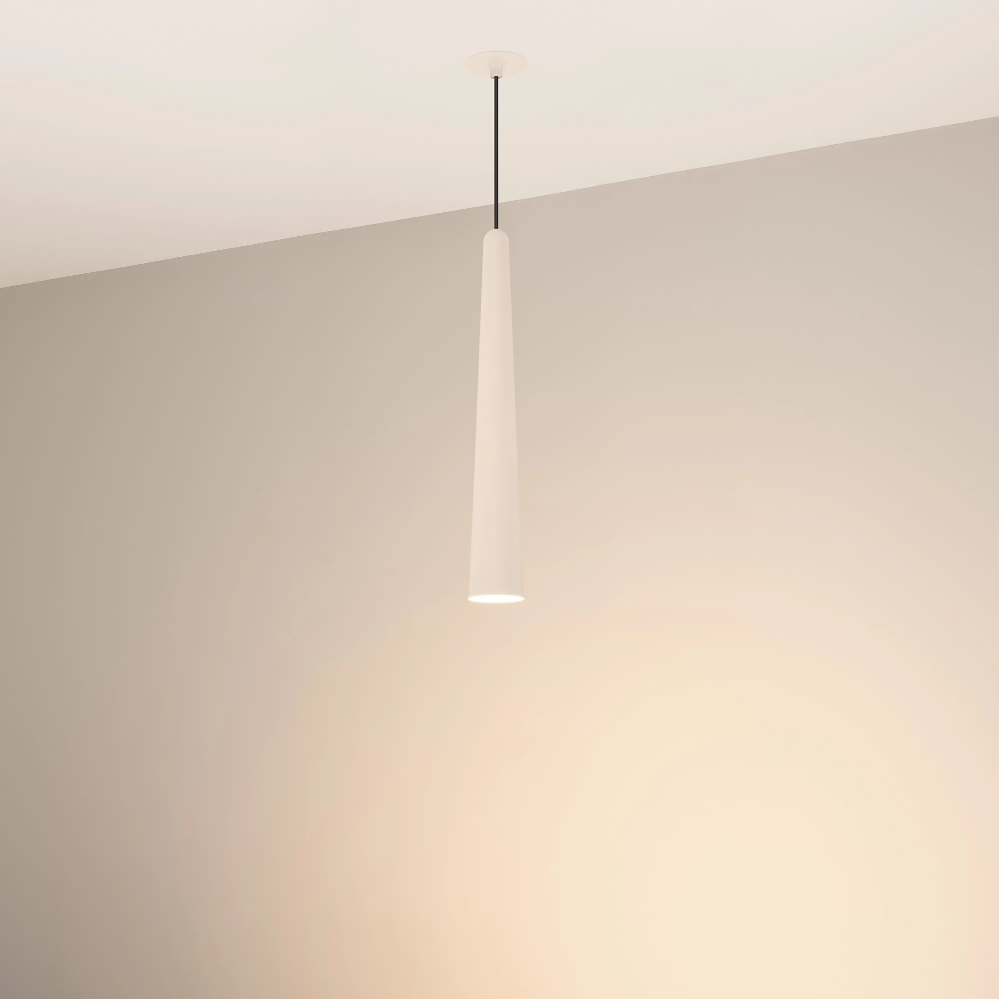 Подвесной светильник. Мощность 5 Вт, св. поток 400 лм, световая эффективность 70 лм/Вт, теплый 3000K, CRI>92, угол 36°, напряжение питания 230 В. Кремовый конусообразный вытянутый корпус из алюминия, линза из PMMA, степень защиты IP20. Размер: диаметр 57 мм, высота 400 мм. Монтаж подвесной, длина подвеса 2000 мм, регулируемая. В комплекте 2 вида чаш. Габариты встраиваемой чаши: Ø 80x41 мм. Габариты накладной чаши Ø80x60 мм. Драйвер 2,8-12В, 500 мА, пульсация <1%.