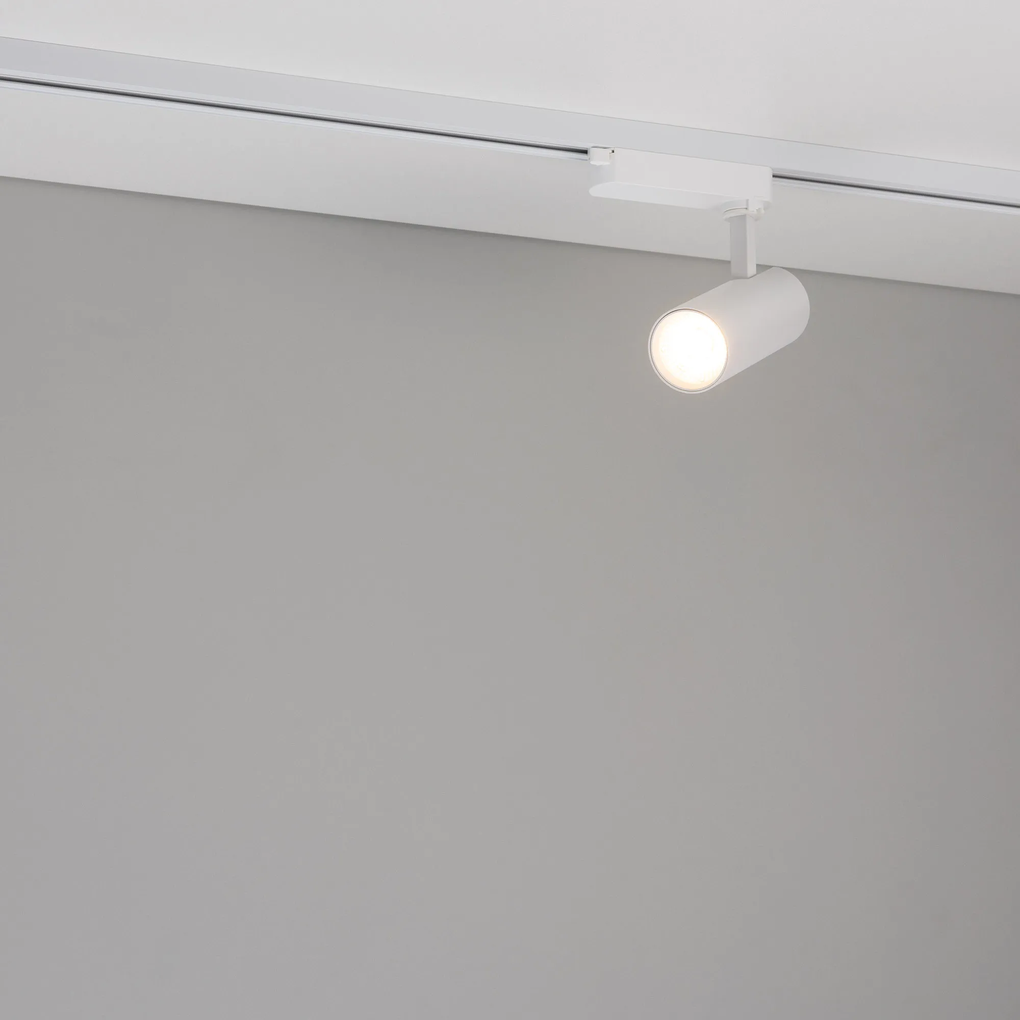 Светильник для треков/шин 2 провода. Мощность 15 Вт, св. поток без решетки honeycomb 1500 лм, 100 лм/Вт, с решеткой honeycomb 990 лм, 66 лм/Вт, дневной 4000 K, CRI>90, угол 36°, напряжение питания 230 В. Белый круглый корпус из алюминия, материал линзы PMMA, степень защиты IP20. Размер: диаметр 60 мм, длина световой части 141 мм. Монтаж на трек 1-фазный. Драйвер встроенный 350 мА 25-40 В, пульсация <5%.