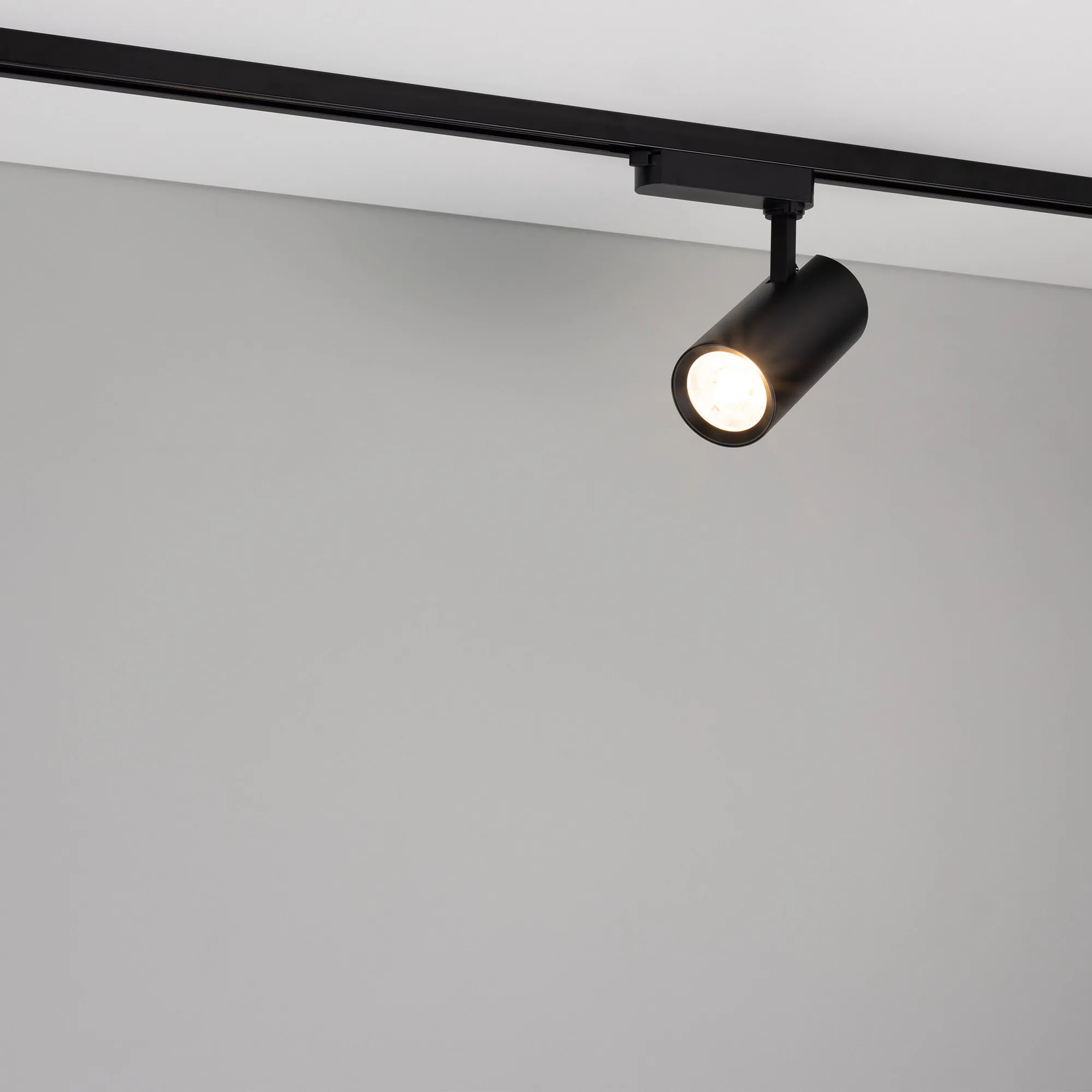 Светильник пдля треков/шин 2 провода. Мощность 20 Вт, св. поток без решетки honeycomb 2000 лм, 100 лм/Вт, с решеткой honeycomb 1320 лм, 66 лм/Вт, дневной 4000 K, CRI>90, угол 15°, напряжение питания 230 В. Черный круглый корпус из алюминия, материал линзы PMMA, степень защиты IP20. Размер: диаметр 74 мм, длина световой части 154 мм. Монтаж на трек 1-фазный. Драйвер встроенный 500 мА 25-40 В, пульсация <5%.