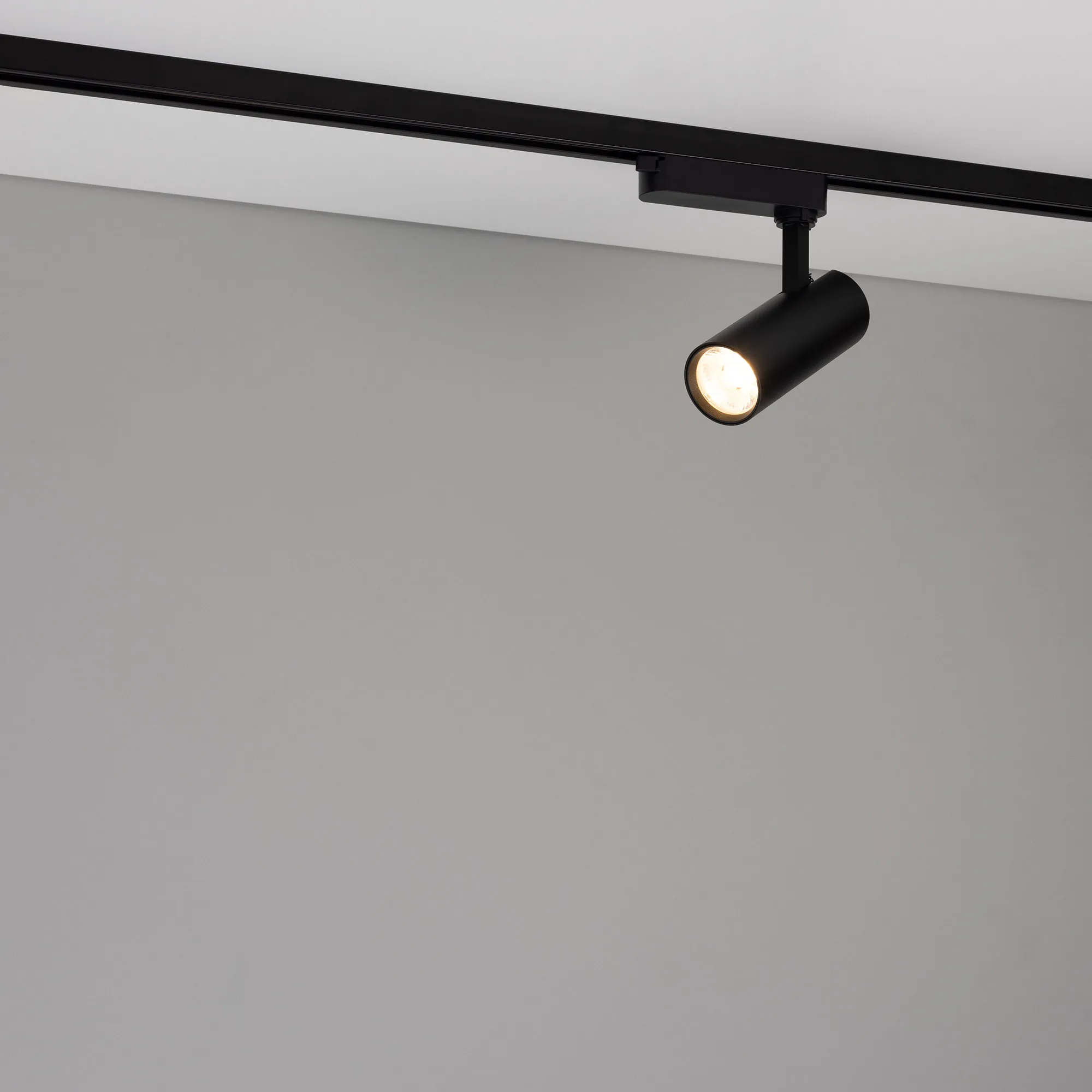 Светильник для треков/шин 2 провода. Мощность 10 Вт, св. поток без решетки honeycomb 1000 лм, 100 лм/Вт, с решеткой honeycomb 660 лм, 66 лм/Вт, теплый 3000 K, CRI>90, угол 36°, напряжение питания 230 В. Черный круглый корпус из алюминия, материал линзы PMMA, степень защиты IP20. Размер: диаметр 55 мм, длина световой части 141 мм. Монтаж на трек 1-фазный. Драйвер встроенный 25-40 В, 250мА., пульсация <5%.
