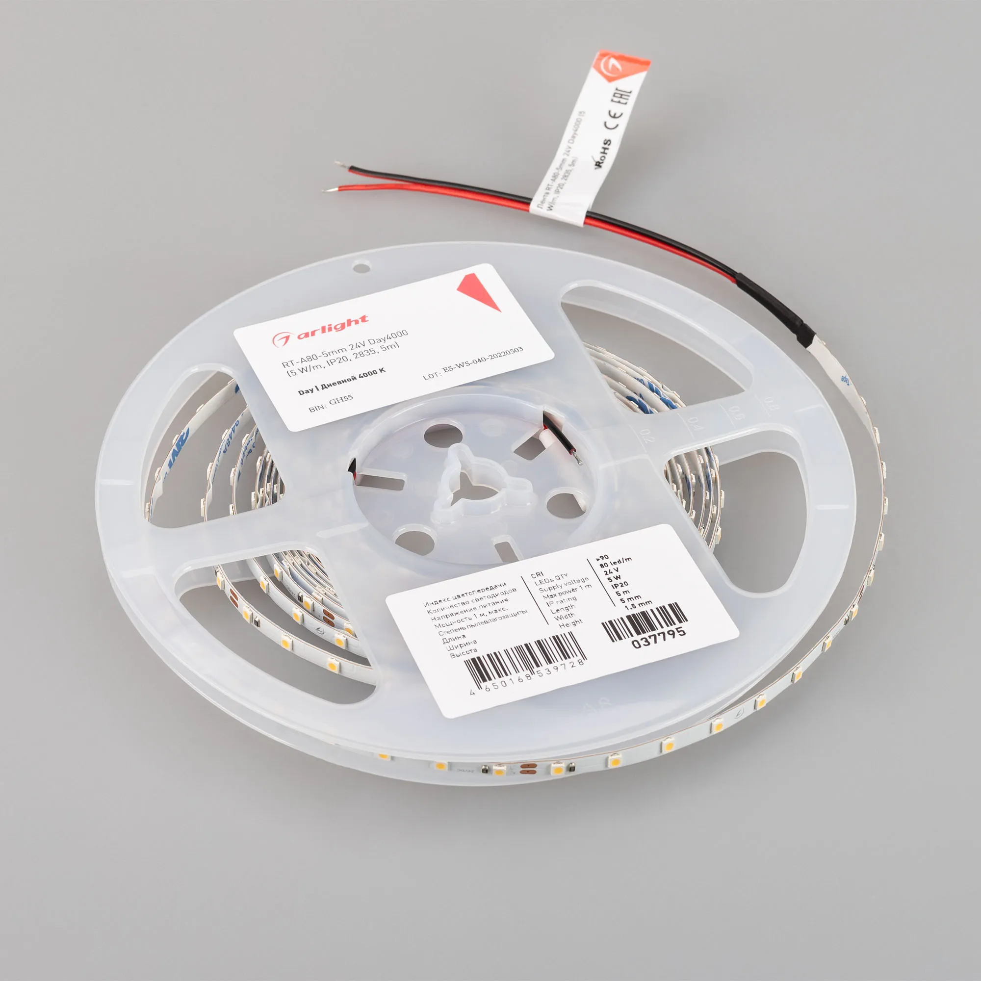 Лента RT-A80-5mm 24V Day4000 (5 W/m, IP20, 5m) (Arlight, Открытый)