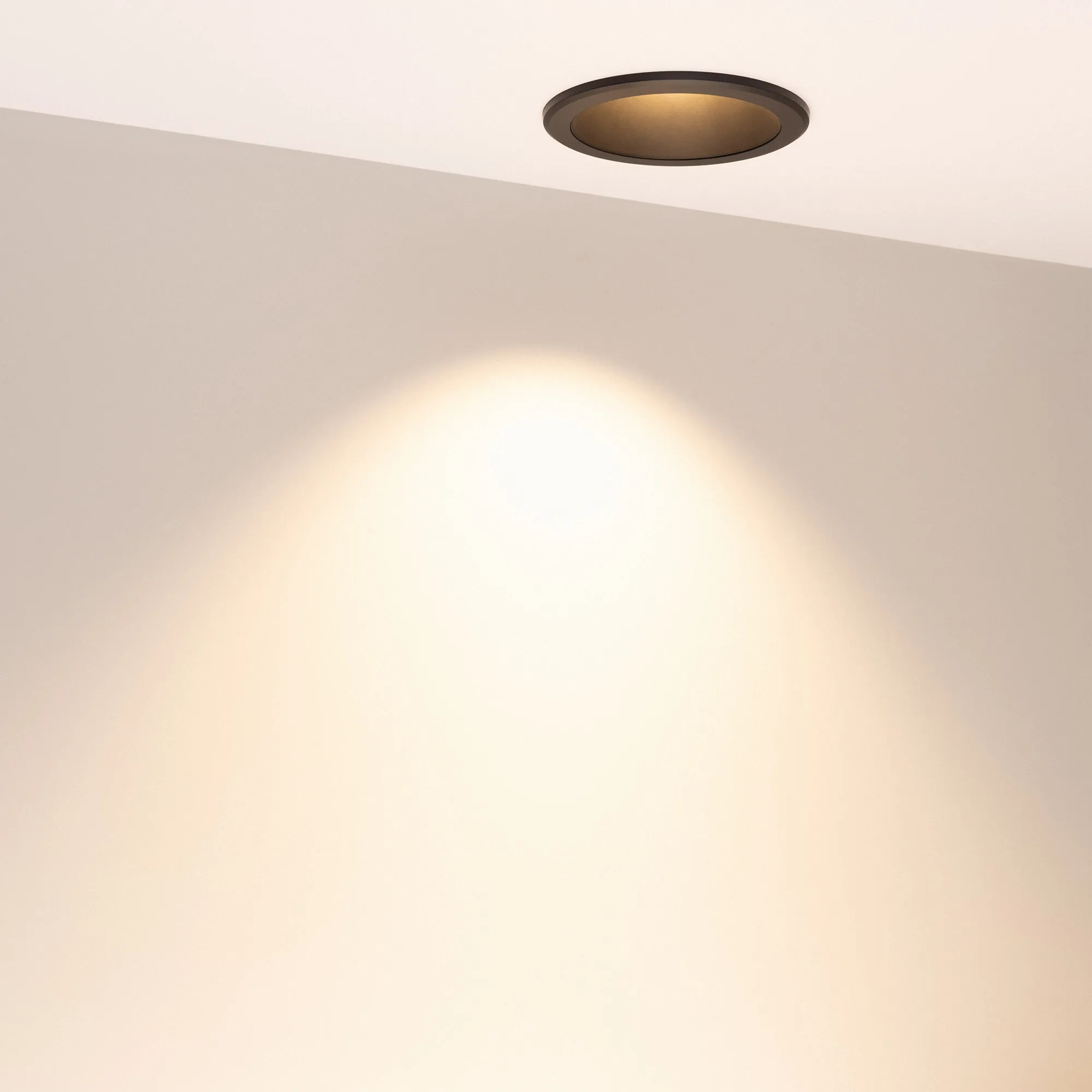 Встраиваемый светильник даунлайт с изменяемой мощностью и цветовой температурой. Мощность 6-9 Вт, св. поток 600-820лм, 100 лм/Вт, цветовая температура 3000-4000-5700 K, CRI>90, угол 60°, напряжение питания 230 В. Чёрный круглый корпус, степень защиты IP54. Размер: диаметр 106 мм, высота 67 мм. Монтаж встраиваемый, установочное отверстие: диаметр 90-98 мм. TRIAC-драйвер, пульсация <1%.