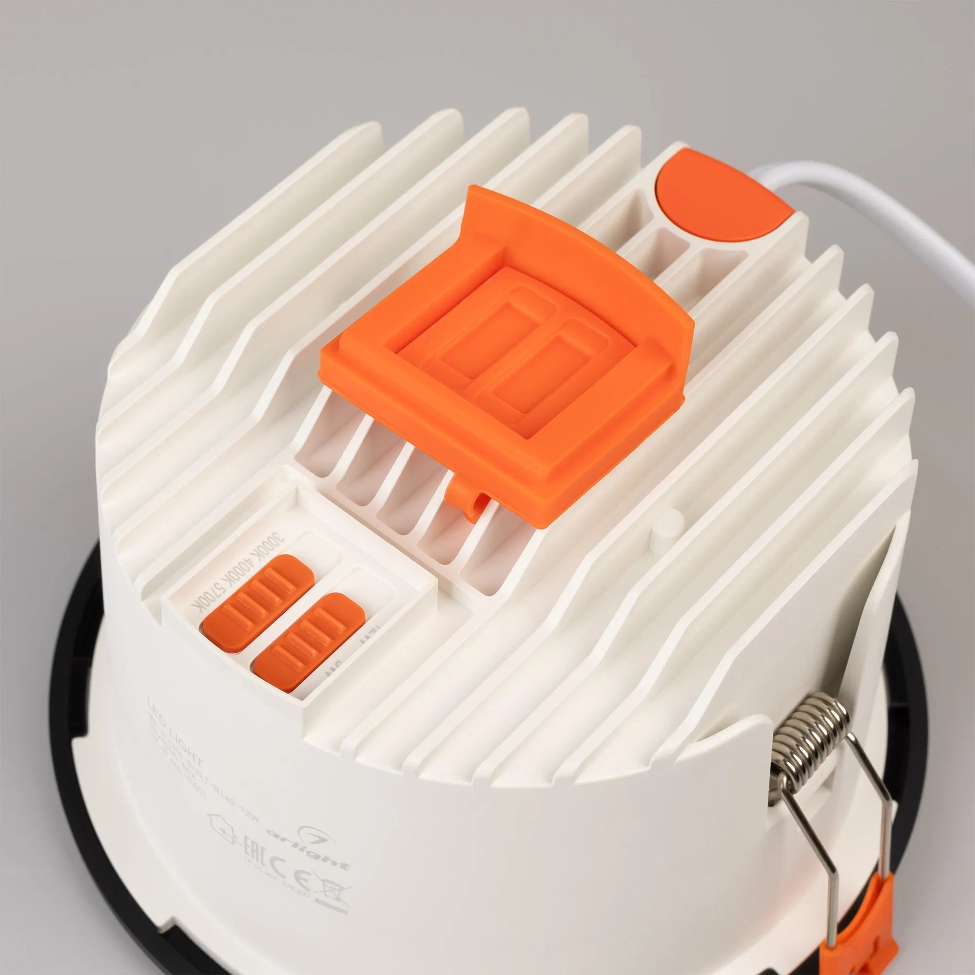 Встраиваемый светильник даунлайт с изменяемой мощностью и цветовой температурой. Мощность 9-12 Вт, св. поток 875-1200лм, 100 лм/Вт, цветовая температура 3000-4000-5700 K, CRI>90, угол 60°, напряжение питания 230 В. Чёрный круглый корпус, степень защиты IP54. Размер: диаметр 140 мм, высота 80 мм. Монтаж встраиваемый, установочное отверстие: диаметр 122-127 мм. TRIAC-драйвер, пульсация <1%.