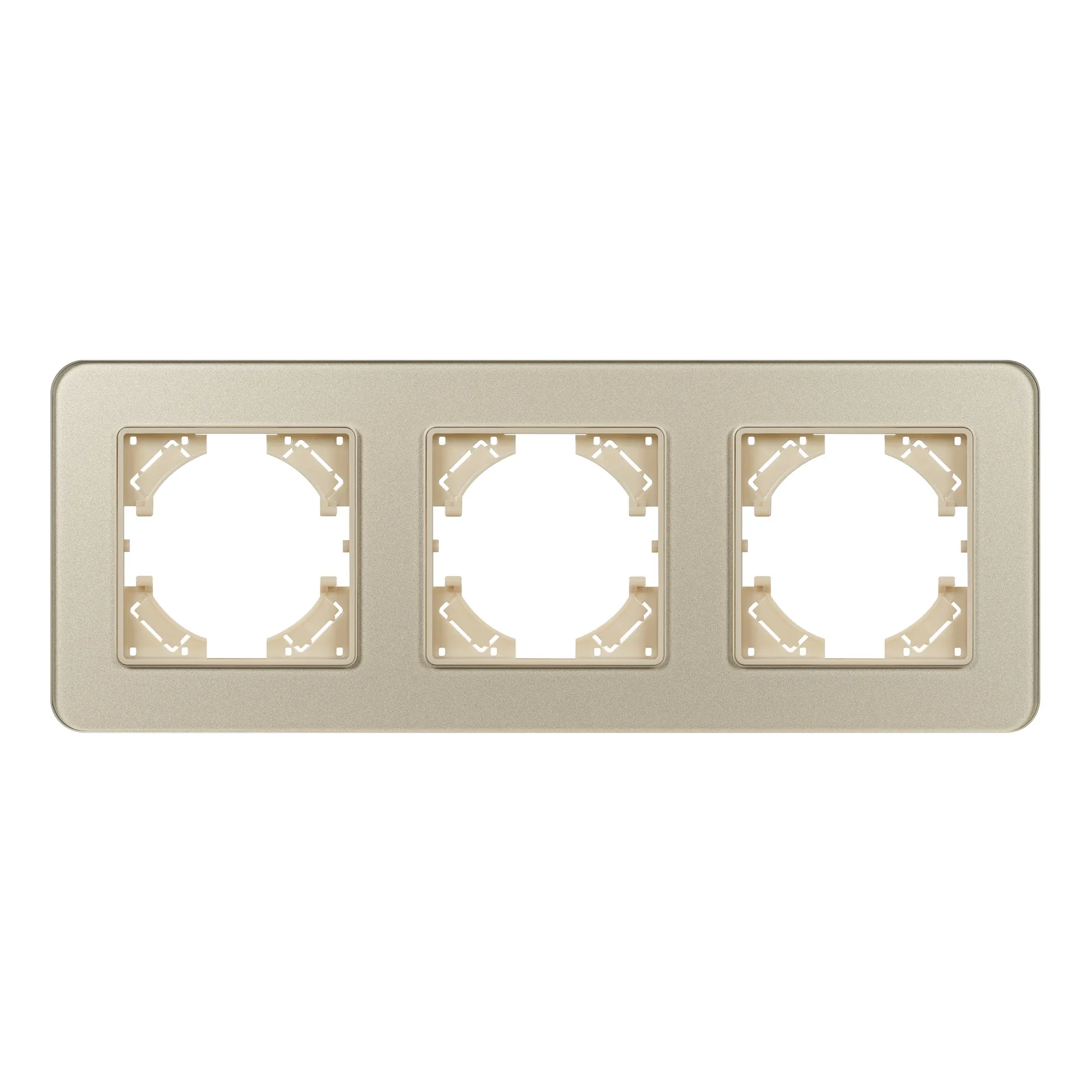 Рамка стеклянная на 3 поста, под встраиваемый механизм. Цвет - золотой. Уровень герметичности IP20. Ориентация монтажа - горизонтальная (основным ориентиром служат посадочные выступы для накладки механизма).