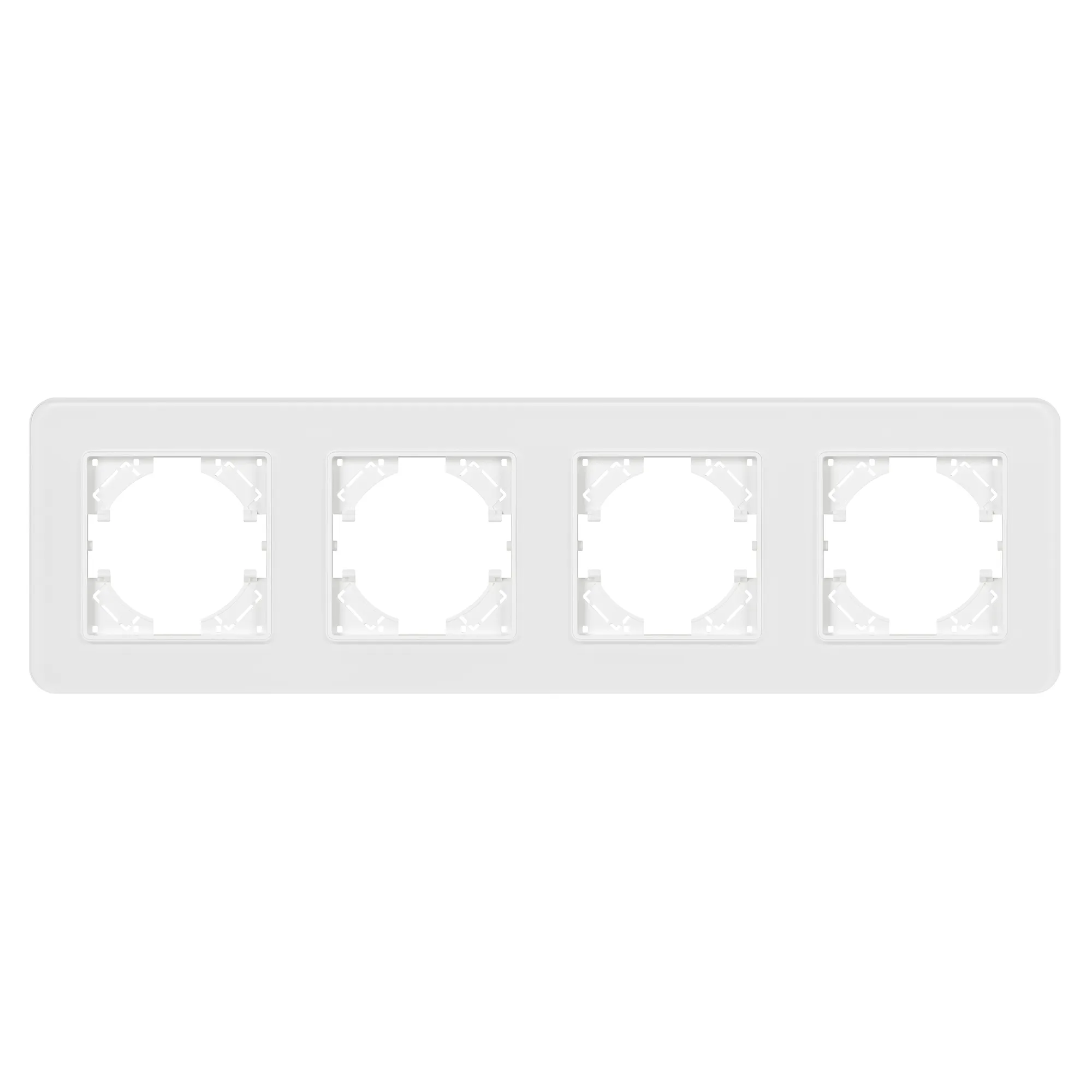 Рамка стеклянная на 4 поста, под встраиваемый механизм. Цвет - белый. Уровень герметичности IP20. Ориентация монтажа - горизонтальная (основным ориентиром служат посадочные выступы для накладки механизма).