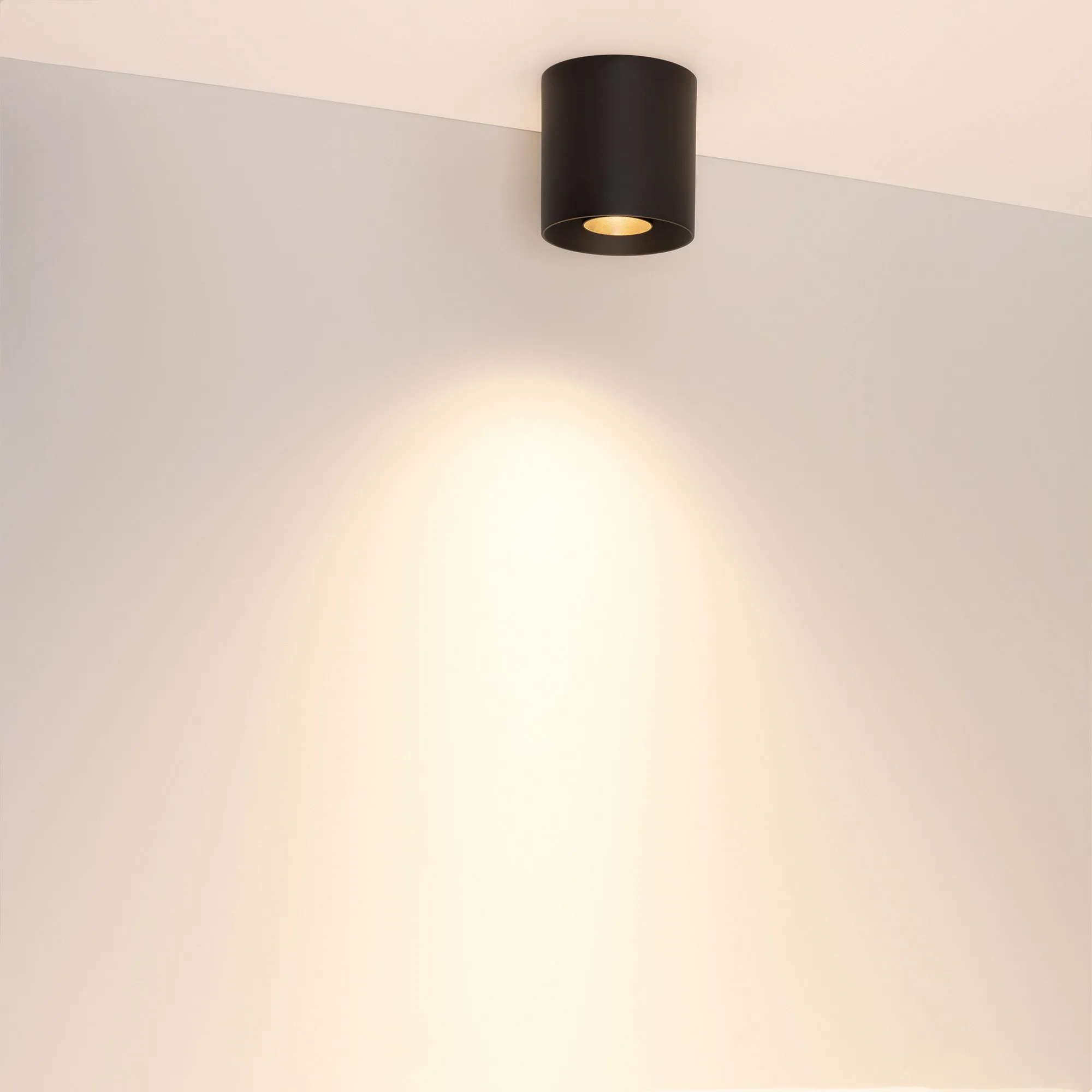 Накладной интерьерный светильник c регулируемым углом излучения. Мощность 10 Вт, св. поток 820-850 лм, 82 лм/Вт, теплый 2700K, CRI>90, угол 20°-45°, напряжение питания 230 В. Черный круглый корпус, угол поворота светового модуля 60° (30°+30°), степень защиты IP20. Размер: диаметр 95 мм, высота 98 мм. Монтаж накладной. Драйвер встроенный 27-48 В, 250 мА, пульсация <0,3 %.