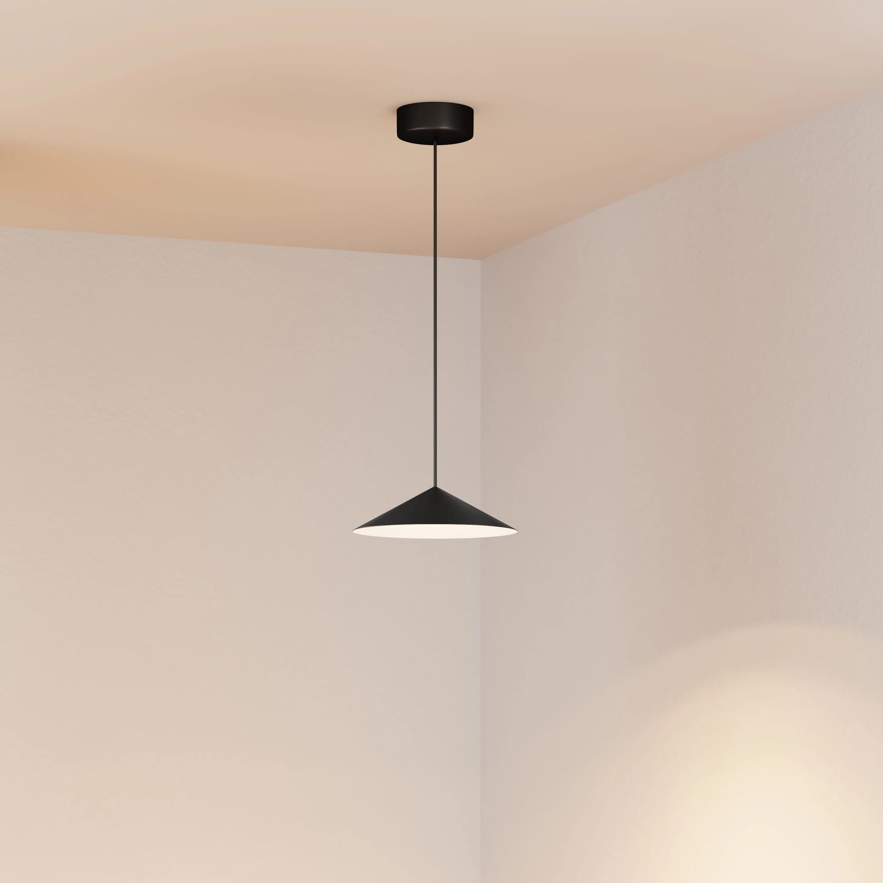Подвесной светильник. Мощность 10 Вт, св. поток 700 лм, 70лм/Вт, теплый 3000 K, CRI>94, угол 36°, напряжение питания 230 В. Черный корпус из алюминия в форме конуса с белой внутренней поверхностью, линза-рассеиватель из PMMA, степень защиты IP20. Размер: диаметр 300 мм, высота 80 мм. Монтаж подвесной, длина подвеса 2000 мм, регулируемая. В комплекте две чаши. Габариты чаши (встроенной) Ø80 х 41 мм, врезное отверстие Ø55 мм, габариты чаши (накладной) Ø110 х 25 мм. Драйвер 2,8-12В, 500мА, пульсация <1%. Управление по TRIAC.