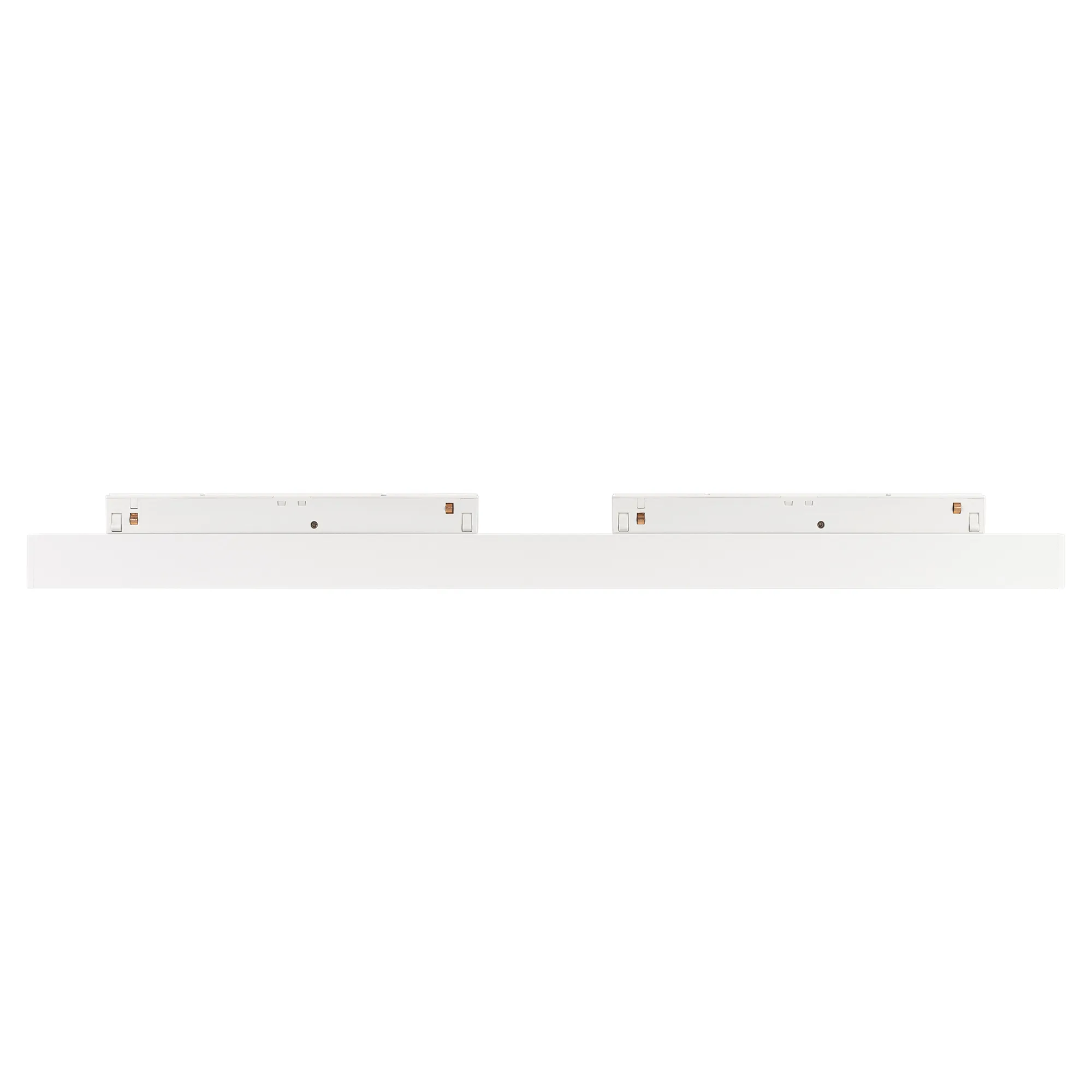 Светильник для магнитных треков MAG-ORIENT шириной 26 мм с управлением DALI. Мощность 16 Вт, св. поток 1312 лм, 82 лм/Вт, теплый 3000 K, CRI>90, угол 100°, напряжение питания 48 В. Белый прямоугольный корпус из металл, экран поликарбонат, степень защиты IP20. Размер: длина 462 мм, ширина 22 мм, высота 42 мм. Монтаж на трек MAG-ORIENT. Пульсация <1%.