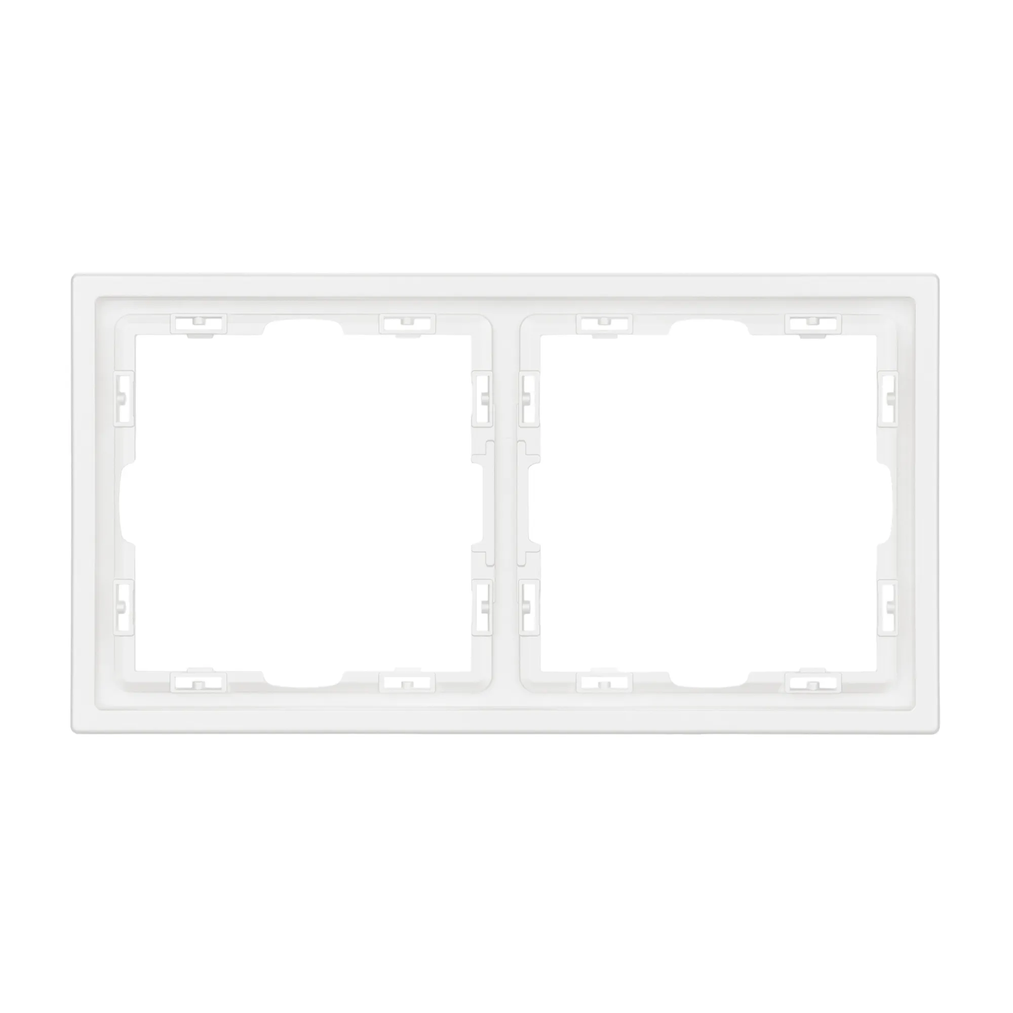 Рамка пластиковая на 2 поста, под встраиваемый механизм. Цвет - белый кварц, с Soft-Touch покрытием. Среднего уровня герметичности IP20. Ориентация монтажа горизонтальная.