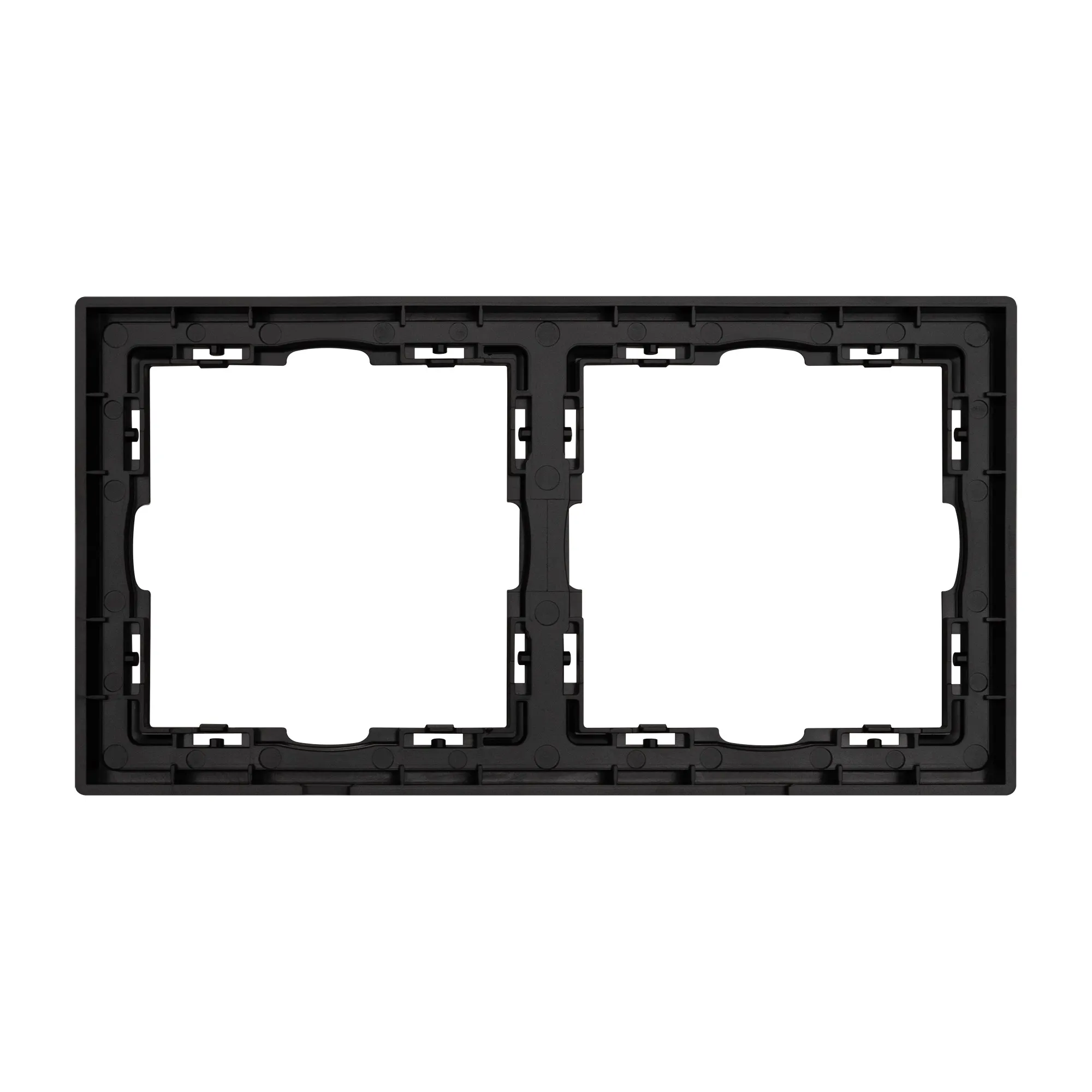 Рамка пластиковая на 2 поста, под встраиваемый механизм. Цвет - черный оникс, с Soft-Touch покрытием. Среднего уровня герметичности IP20. Ориентация монтажа горизонтальная.