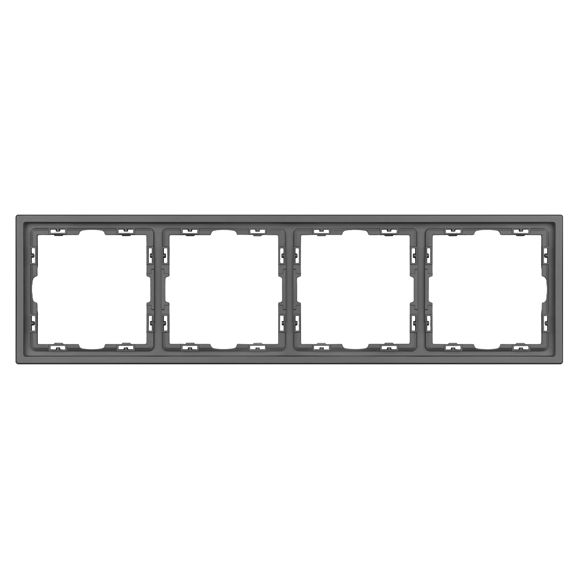 Рамка пластиковая на 4 поста, под встраиваемый механизм. Цвет - серый базальт, с Soft-Touch покрытием. Среднего уровня герметичности IP20. Ориентация монтажа горизонтальная.