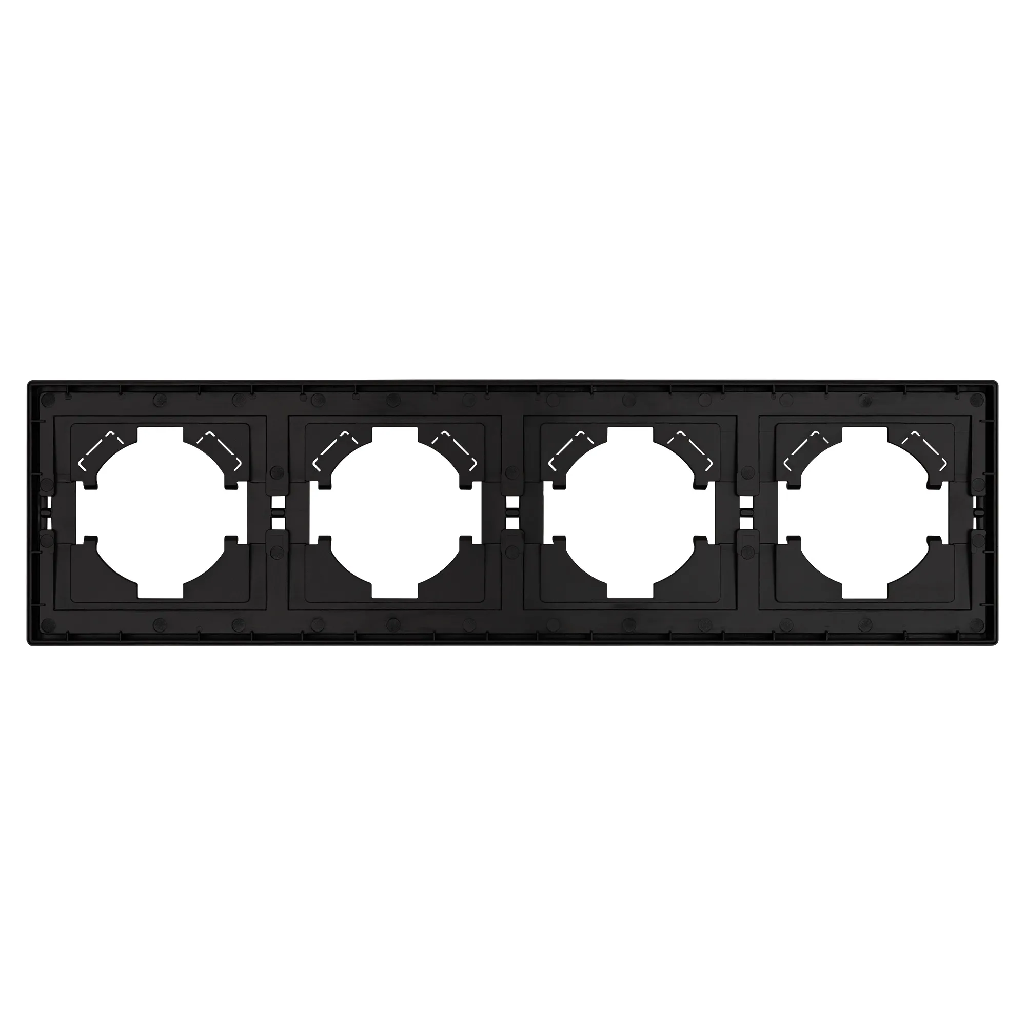 Рамка пластиковая на 4 поста, под встраиваемый механизм. Цвет - графитовый. Уровень герметичности IP20. Ориентация монтажа горизонтальная.