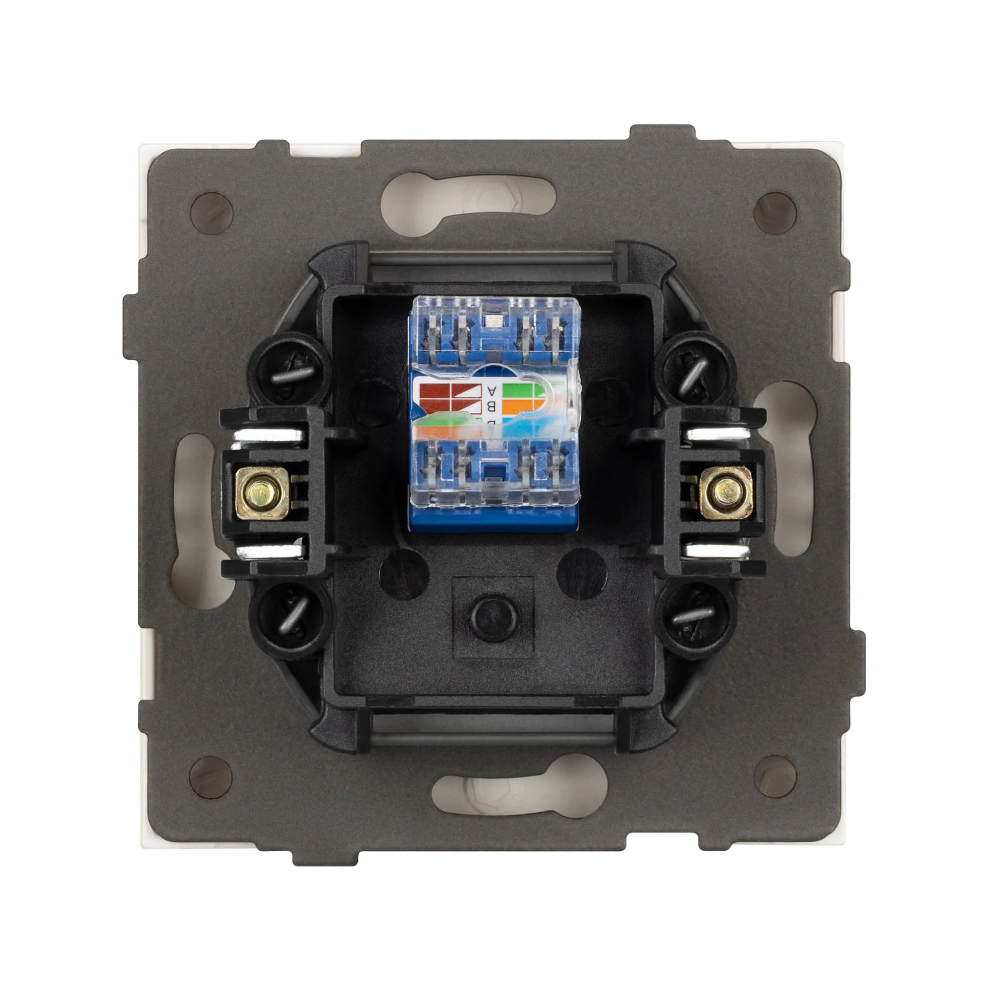 Механизм компьютерной розетки на 1 пост 6-й категории. Цвет - белый. Без фронтальной рамки. Уровень пылевлагозащиты IP20. Розетка устанавливается в стандартный подрозетник круглого сечения диаметром 60мм.