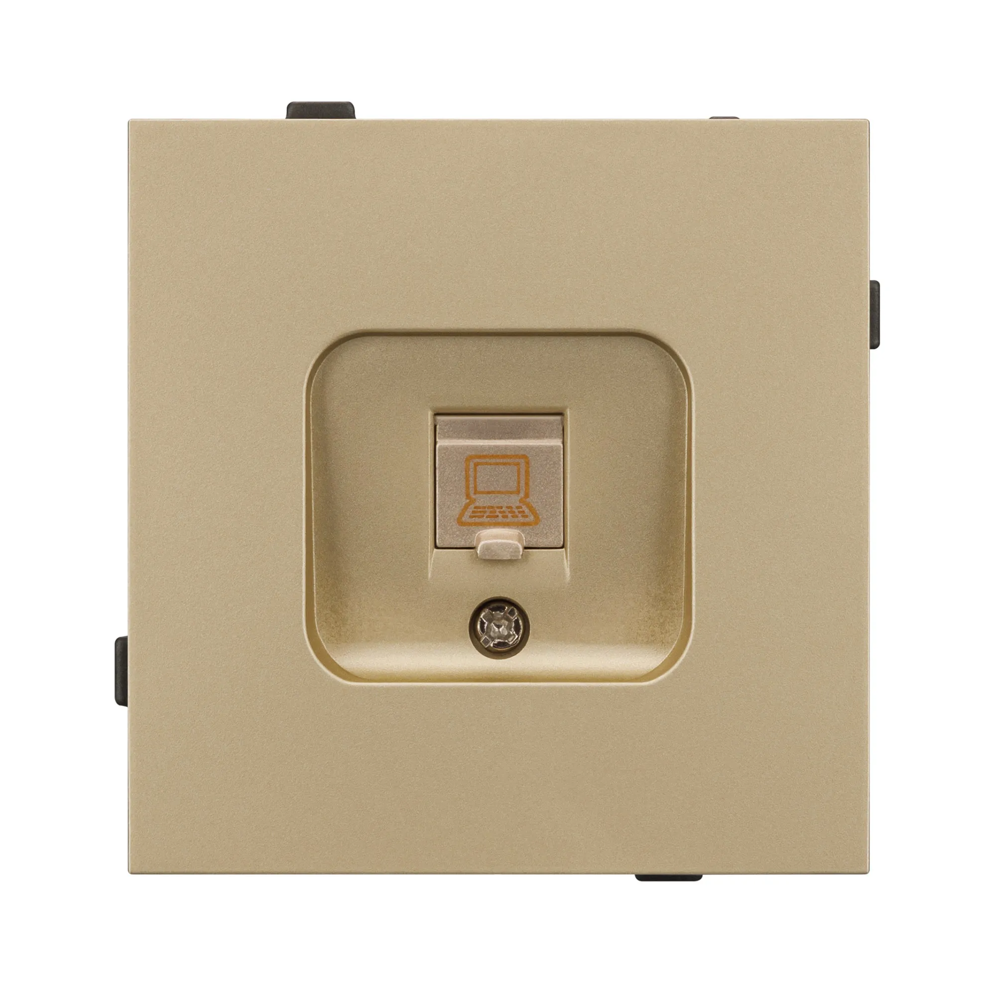Механизм компьютерной розетки на 1 пост 6-й категории. Цвет - матовый песочный, с Soft-Touch покрытием. Без фронтальной рамки. Уровень пылевлагозащиты IP20. Розетка устанавливается в стандартный подрозетник круглого сечения диаметром 60мм.