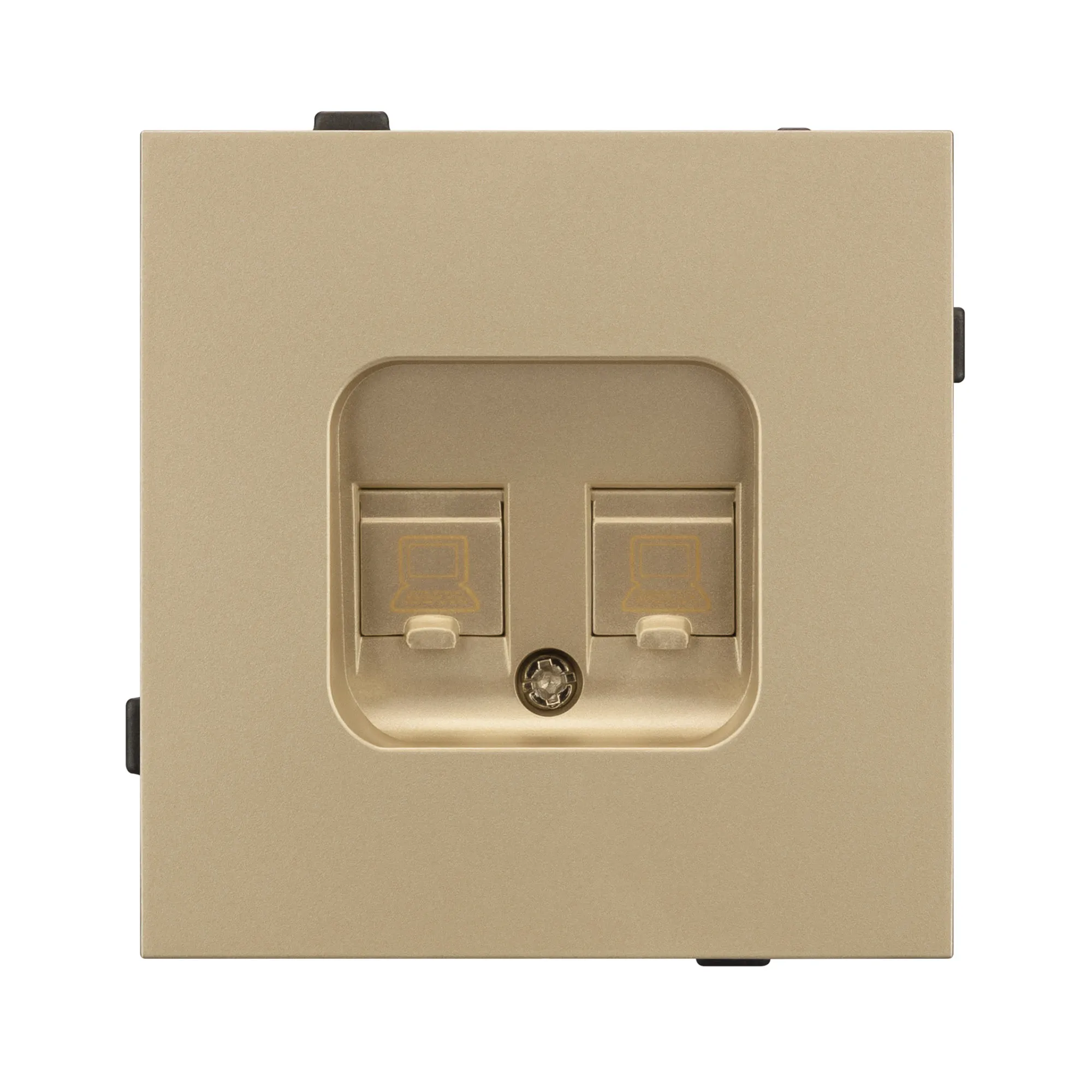 Механизм компьютерной розетки на 2 поста 6-й категории. Цвет - матовый песочный, с Soft-Touch покрытием. Без фронтальной рамки. Уровень пылевлагозащиты IP20. Розетка устанавливается в стандартный подрозетник круглого сечения диаметром 60мм.