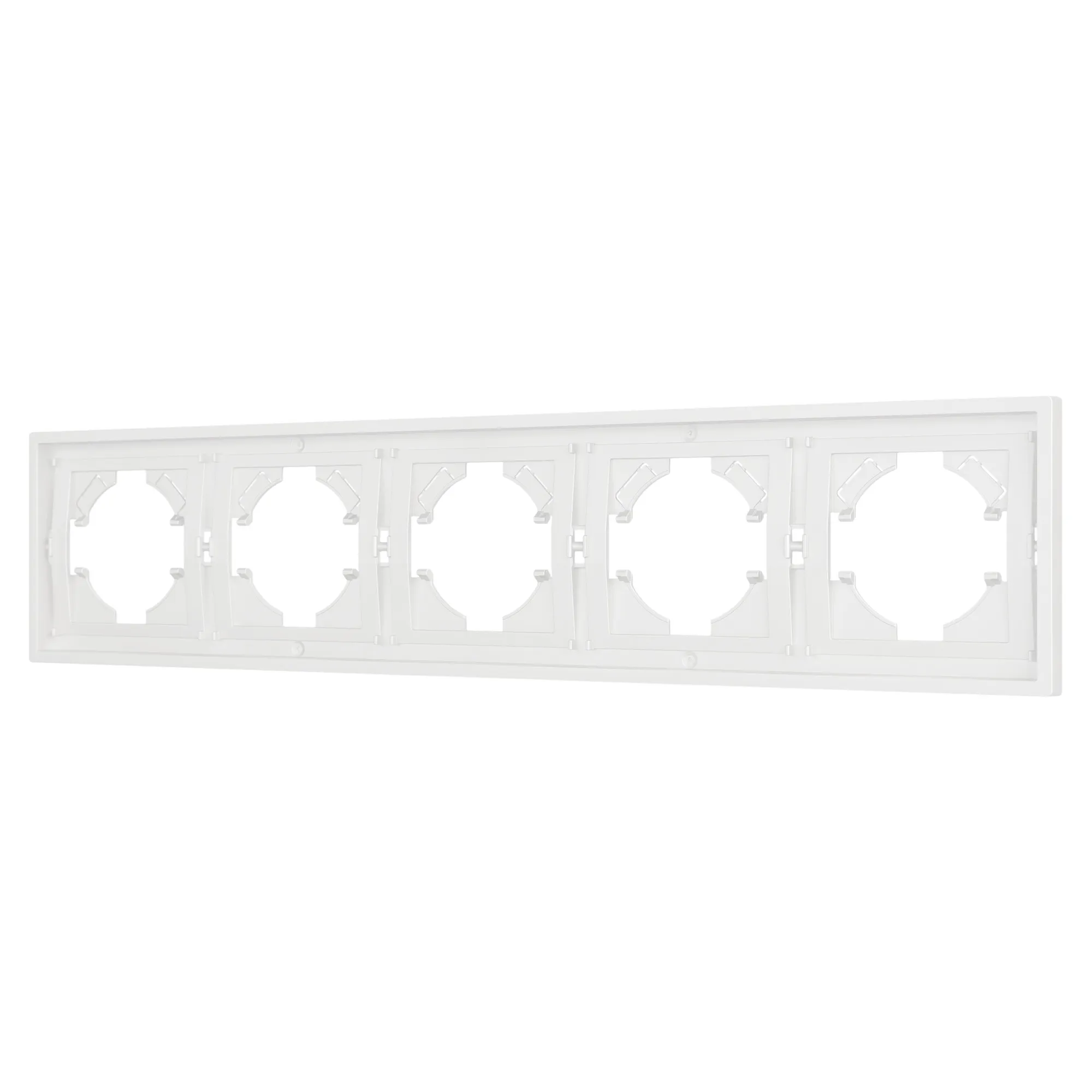 Рамка пластиковая на 5 постов, под встраиваемый механизм. Цвет - матовый белый, с Soft-Touch покрытием. Уровень герметичности IP20. Ориентация монтажа горизонтальная.