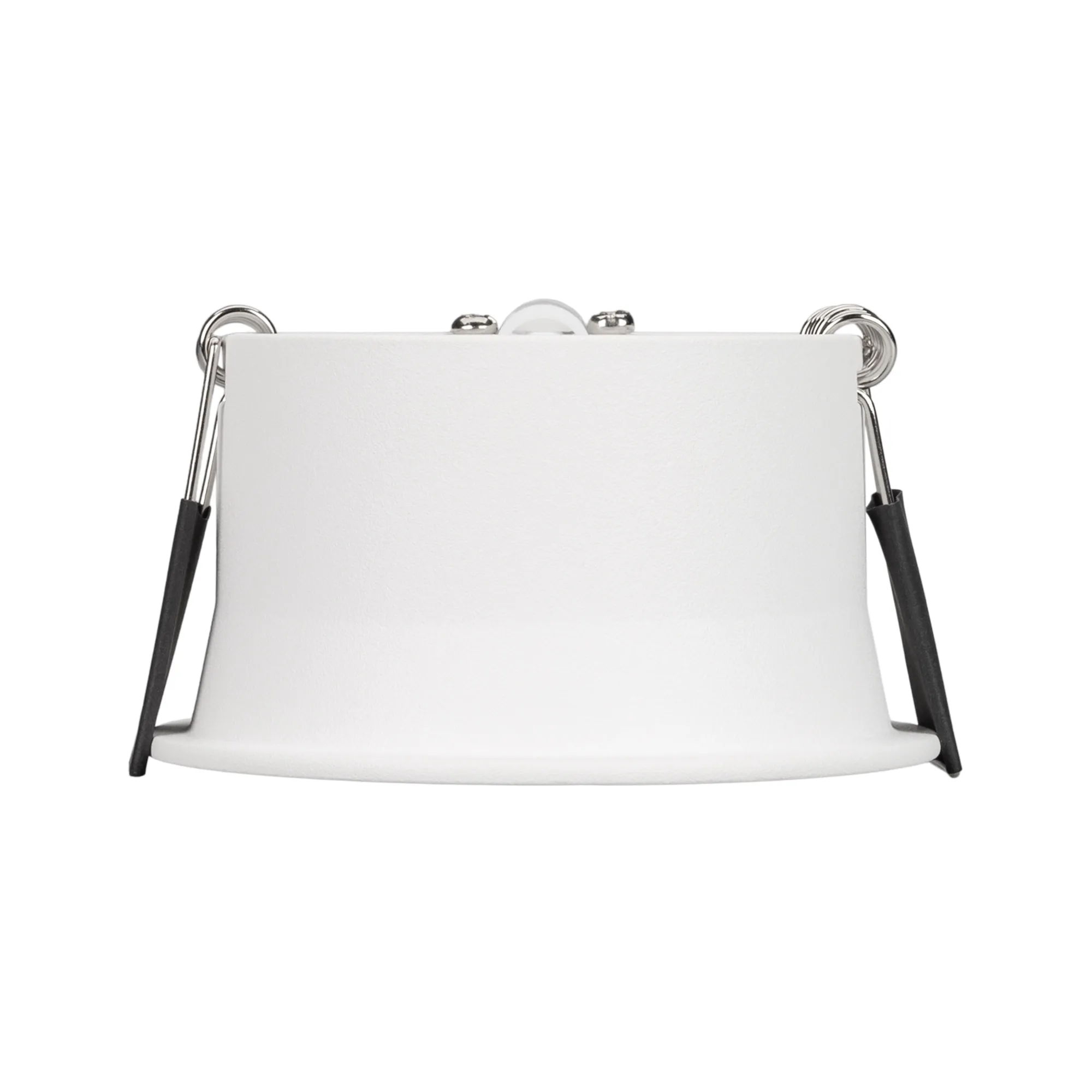 Встраиваемый светильник даунлайт. Мощность 9 Вт, св. поток 595 лм, 66 лм/Вт, дневной 4000 K, CRI>90, угол 85°, напряжение питания 230 В. Белый круглый корпус из алюминия, степень защиты IP20. Размер: диаметр 82 мм, высота 46 мм. Монтаж встраиваемый, установочное отверстие: диаметр 75 мм. Драйвер 27-42 В, 200 мА, пульсация <2%.