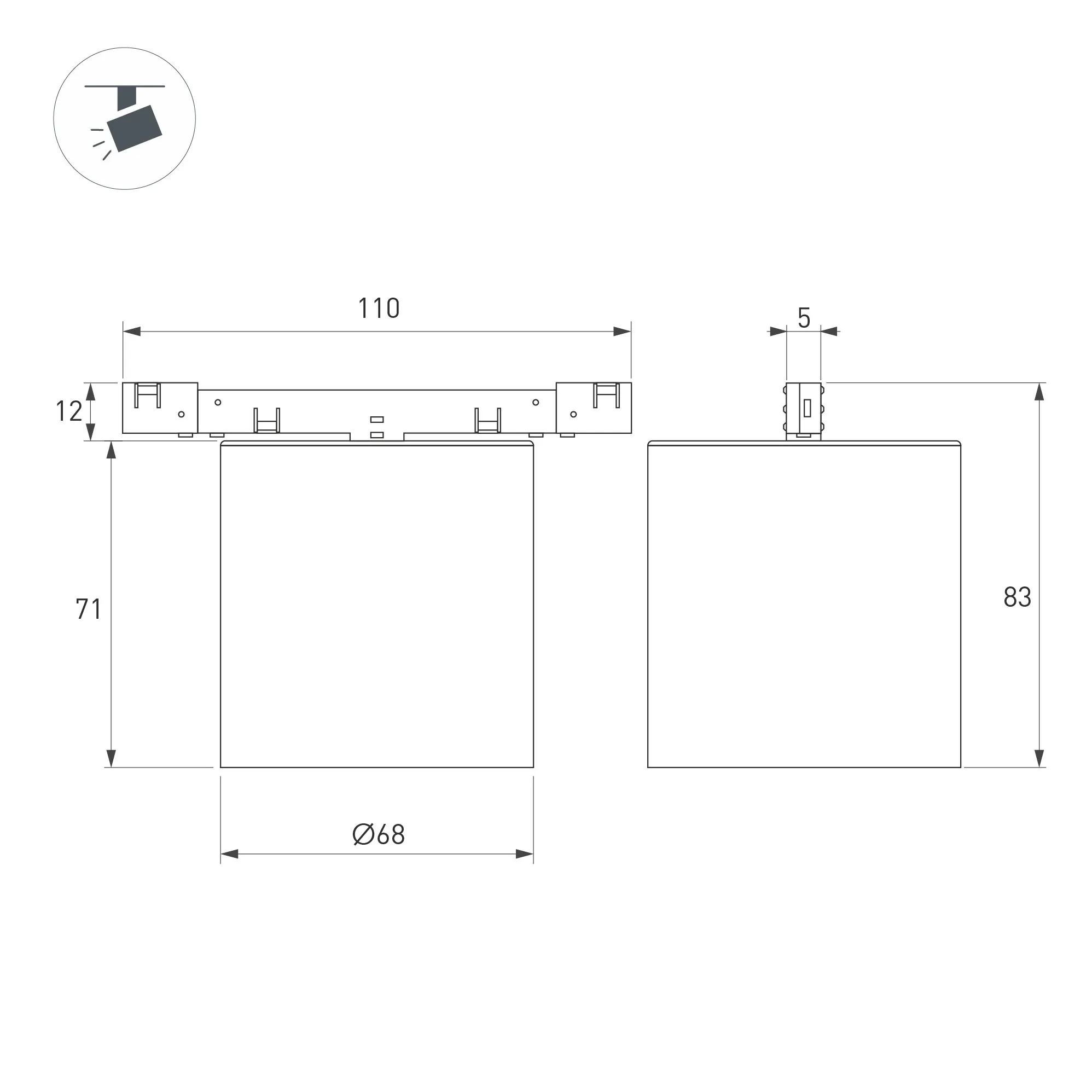 Светильник для магнитных треков MAG-MICROCOSM шириной 11 мм. Мощность 7 Вт, св. поток 672 лм, 106 лм/Вт, дневной 4000 K, CRI>92, угол 36°, напряжение питания 24 В. Черный фигурный корпус из алюминия, экран поликарбонат, степень защиты IP20. Габариты общие:109 х 68 х 82 мм. Габариты светового модуля :Ø68 х 71 мм. Габариты адаптера: 110 х 5 х 11,6 мм. Монтаж на трек MICROCOSM. Пульсация <1%.